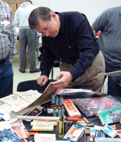 Centuri Engineering Company founder and NARCON special guest Lee Piester looks over some Centuri memorabilia. Armed guards stood around the perimeter of the table... :-) Lots of CLASSIC stuff!