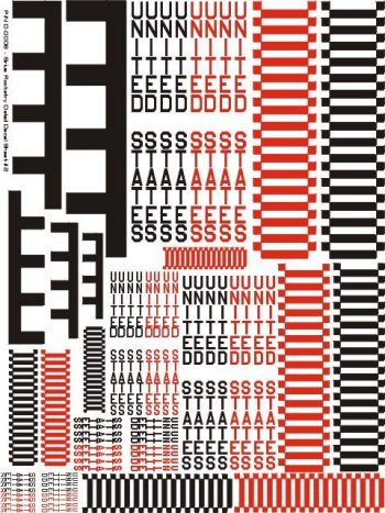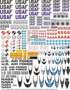 Detail Decal Sheet #2 has roll patterns in black and red, and UNITED STATES block letter markings in the different sizes. Detail Decal Sheet #3 has umbilical hatch markings, warnings, hatches, CG/CP markings, and one of the most requested items: cockpit window markings in different shapes and scales!